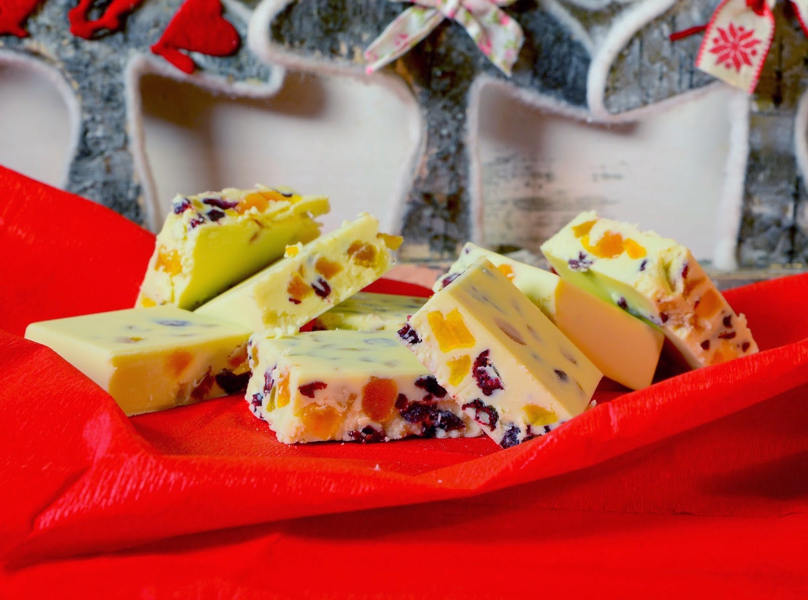 | Turron de chocolate blanco con arandanos y albaricoque (receta aqui) |