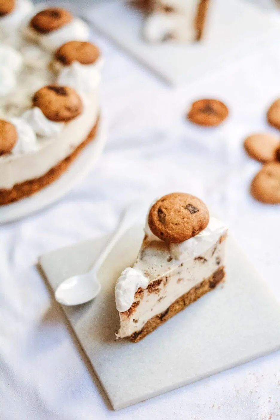Una de las recetas de cheesecake mas originales y diferentes que he probado últimamente. Una base de galleta con chips de chocolate, gruesa y crujiente y un relleno cremoso de queso y trocitos de cookies.