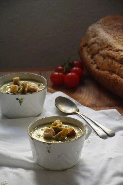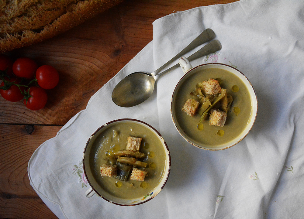 ayer hice para cenar esta crema con las últimas alcachofas de la temporada. Quedó buenísima!!! Eso sí, yo la tuve que pasar por el colador chino para que quedara fina si no…..