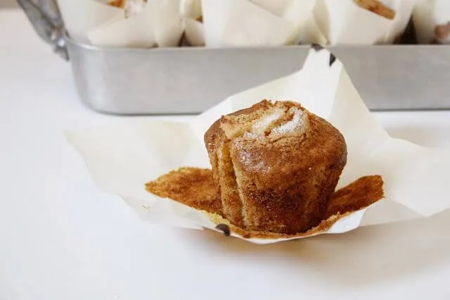 Precalentámos el horno a 220ºC. Sacamos las magdalenas las espolvoreamos un poco de azúcar por encima, las metemos al horno y bajamos la temperatura a 190º-210ºC, y dejamos hacer durante 20-25 minutos, hasta que veamos que han subido y se ponen doradas.