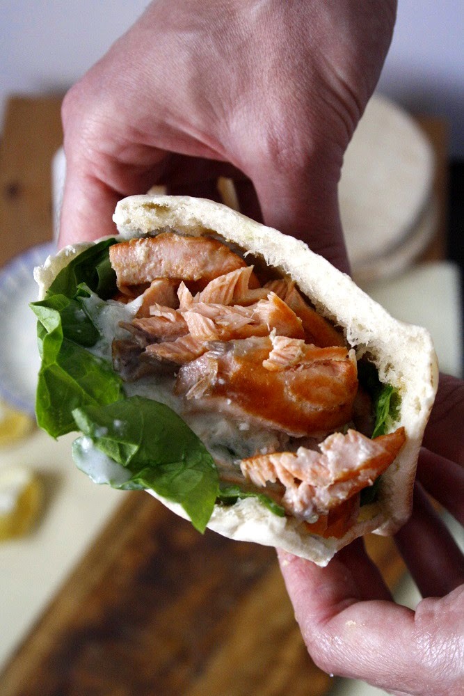 Pita de salmón, que idea tan buena y que rica debía estar. Yo hace meses hasta me lancé a hacer pan de pita casero, es complicadillo pero al final sale delicioso. Un beso!