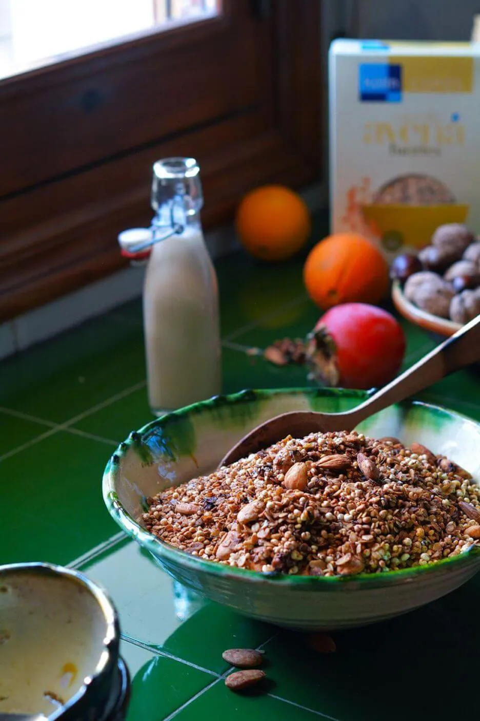 Me encanta tomar esta receta de granola de Navidad entre horas para cuando me apetece darme un capricho dulce. Aunque donde más la disfruto es en los desayunos acompañando a un buen yogur de leche de cabra y bien de fruta de temporada. Para mí es mi desayuno favorito del mundo. Además esta receta de granola es SIN GLUTEN.