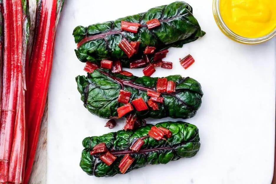Los tallos de las hojas de acelgas